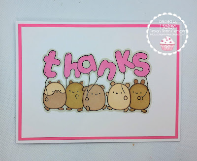 To make my card I used the 'Balloon Bunch Line Up' stamp set from Clearly Besotted and coloured the image with Promarkers.